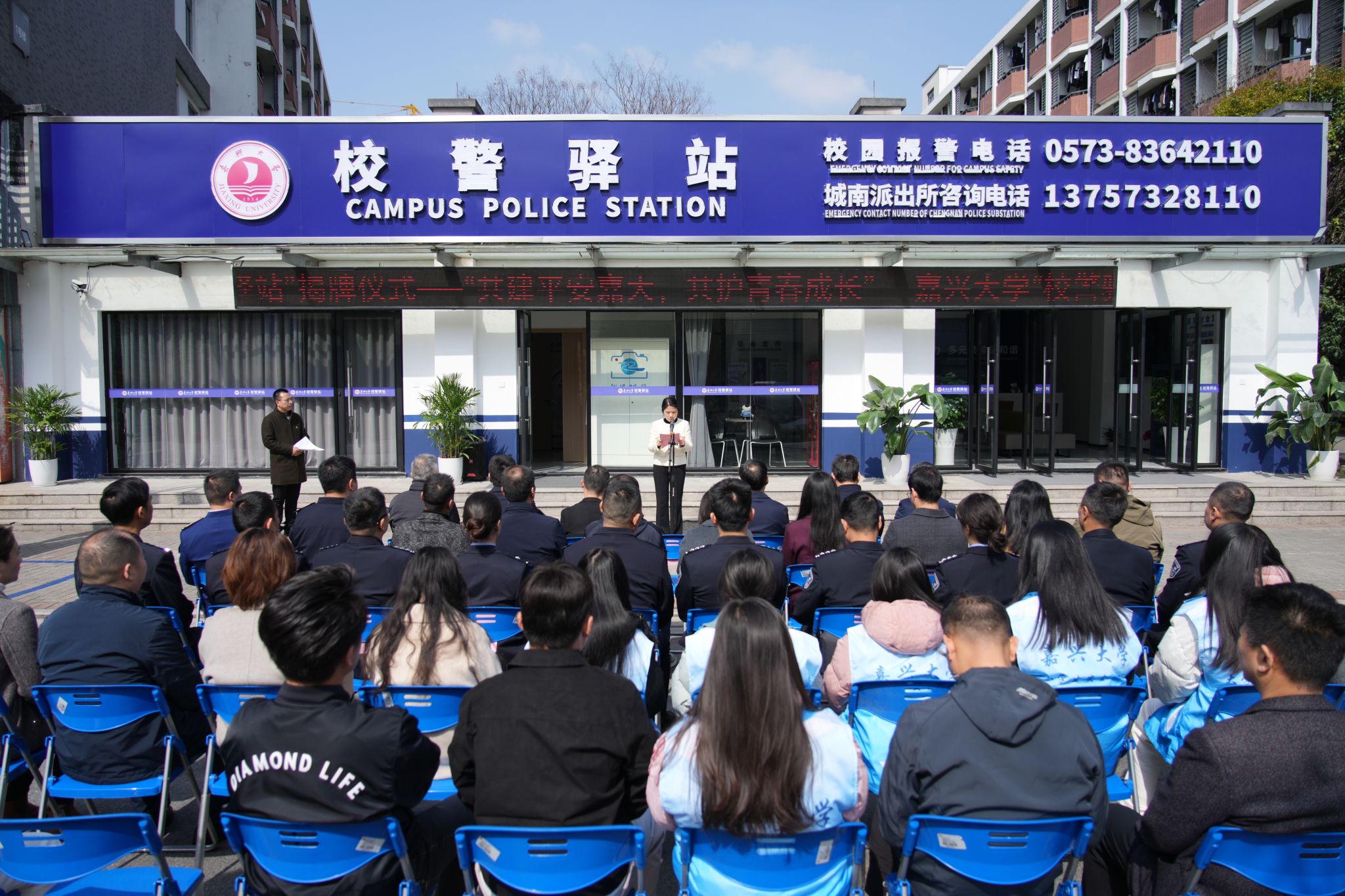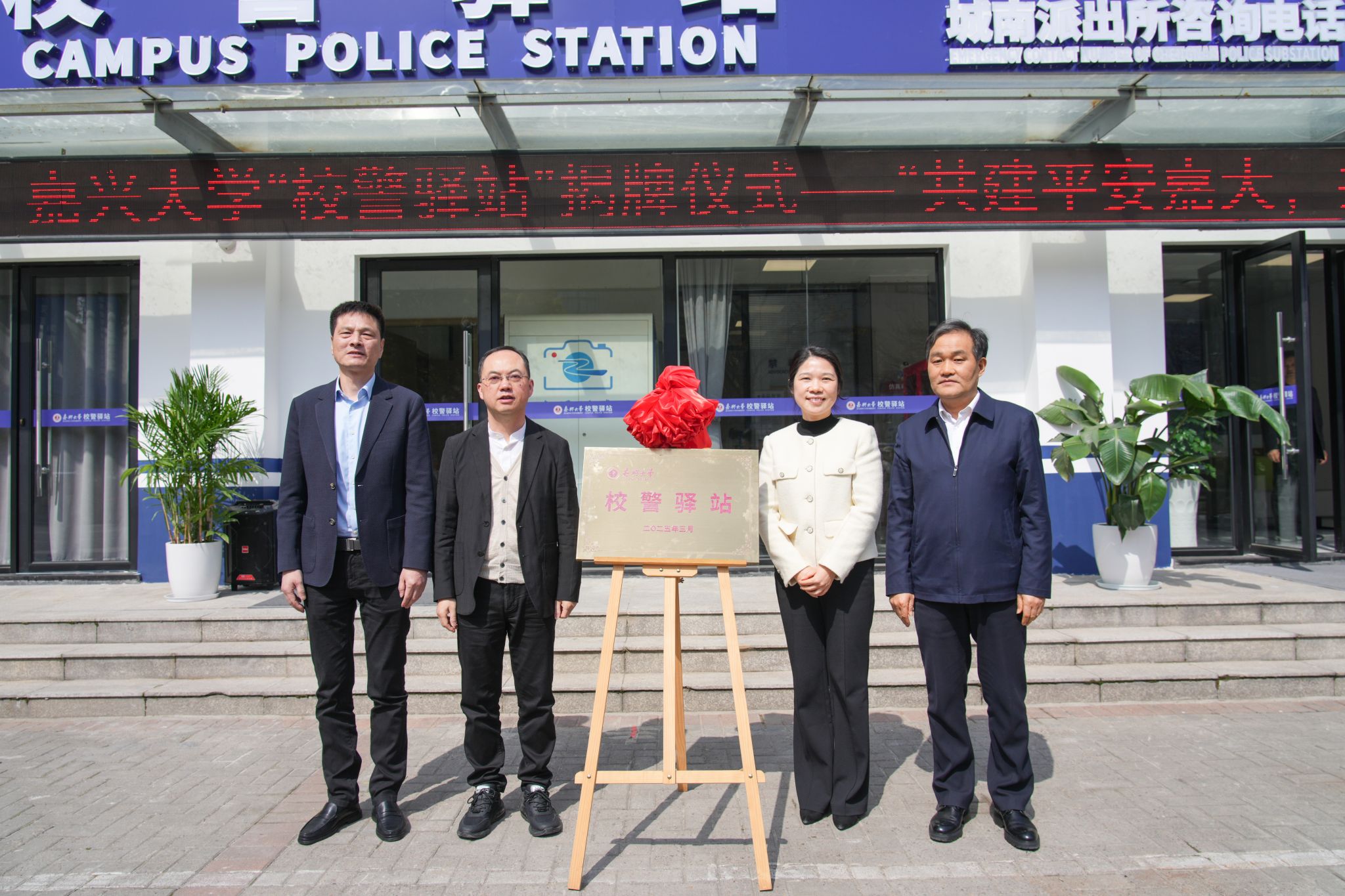 4月1日上午,以“共建平安嘉大,共护青春成长”为主题的嘉兴大学校警驿站揭牌仪式在梁林校区举行。校党委副书记陈立力,嘉兴市委教育工委专职副书记、党组副书记金剑辉,嘉兴市公安局党委委员、副局长傅金明,嘉兴经开区公安分局局长袁知峰共同为“校警驿站”揭牌。