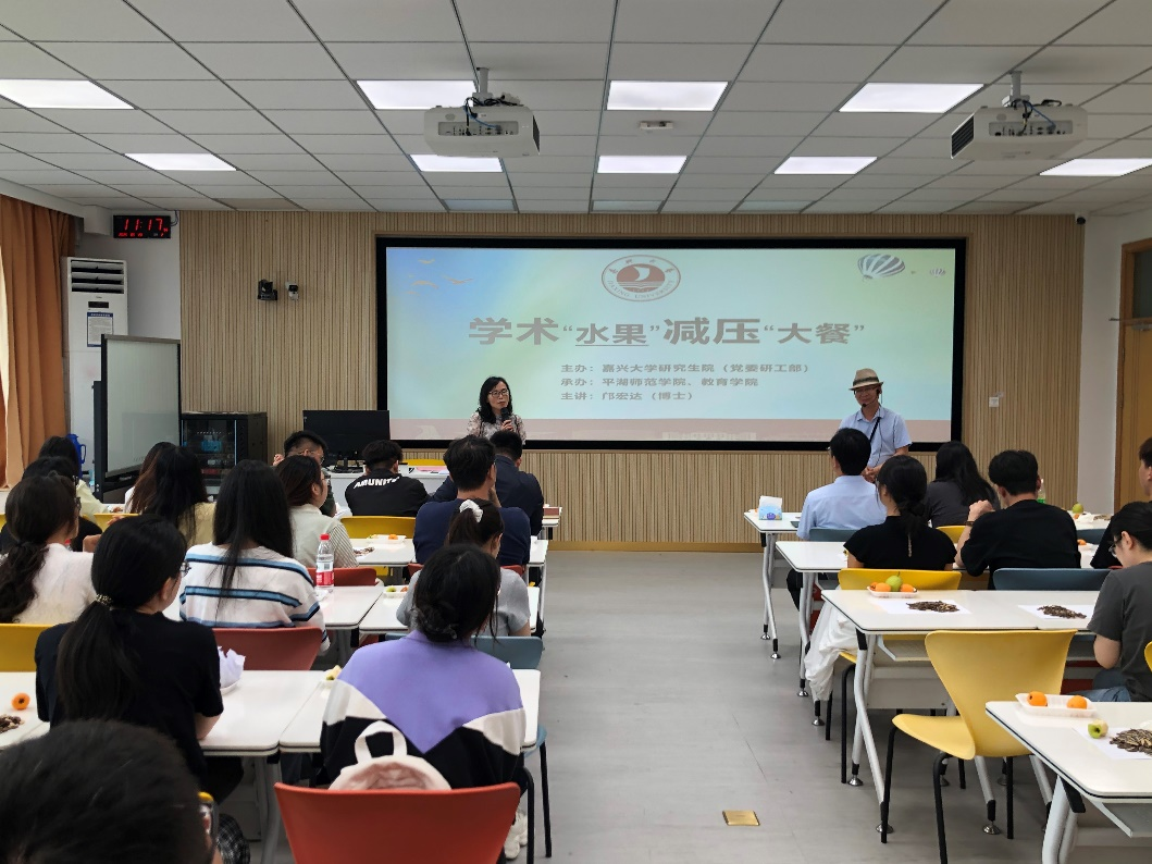 本次“学术水果减压大餐”活动采用沉浸式的场景体验,活动分为“一口吃一个准”“把压力吃下去”和“把烦恼吐出来”三个环节。将心理学知识寓于趣味性、学理性的体验活动之中,为研究生群体舒缓减压,赋能科研创新、勇攀学术高峰提供了行之有效的方法。