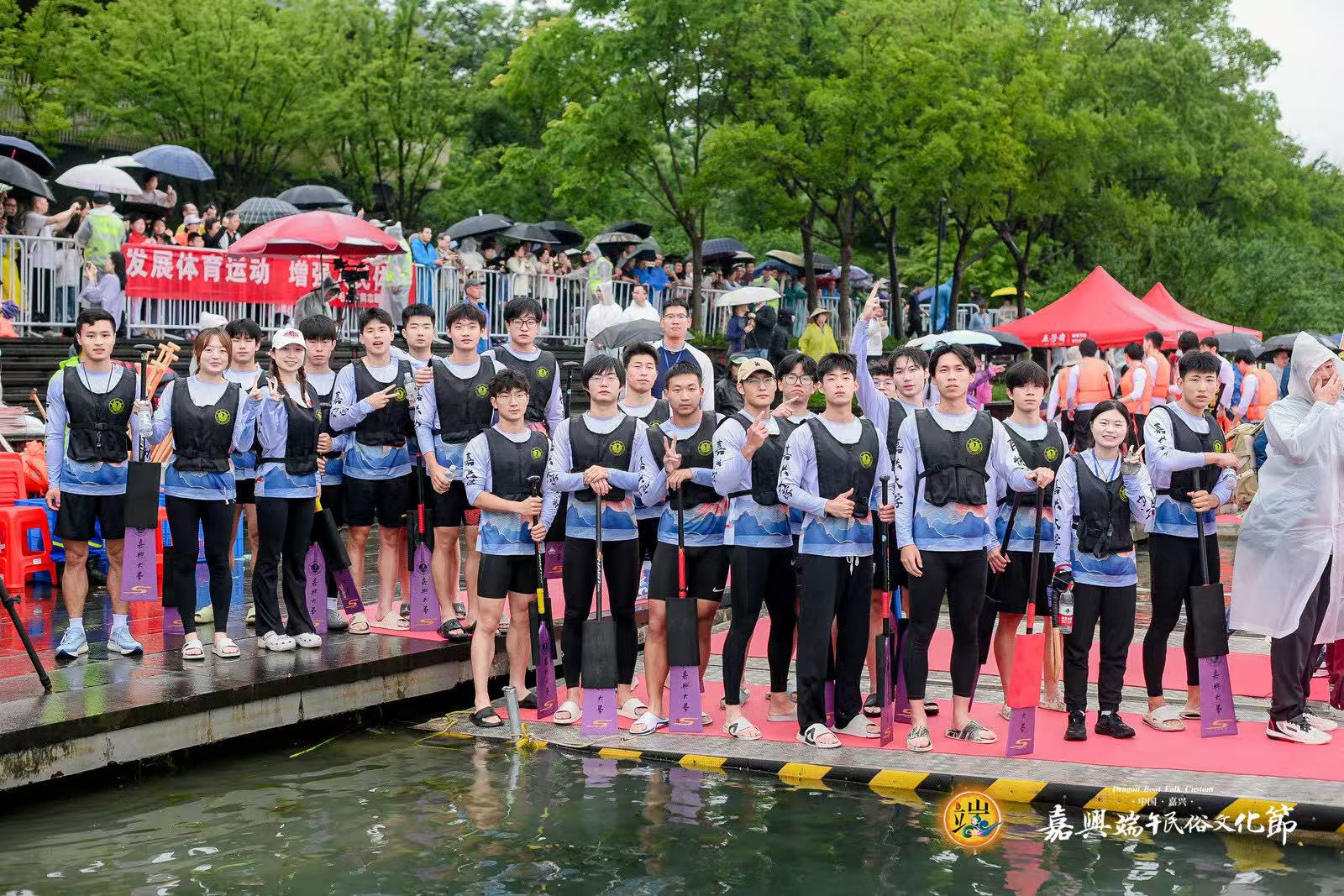 6月2日,2025嘉兴端午民俗文化节“五芳斋杯”龙舟竞渡、踏白船表演赛在西南湖热闹登场。13支龙舟队与7支踏白船队在此击楫中流,参加400米直道竞速赛。经过两轮激烈竞争,我校水上运动队位列总成绩排名第二,获得2025年嘉兴五芳斋杯龙舟竞渡赛的亚军。