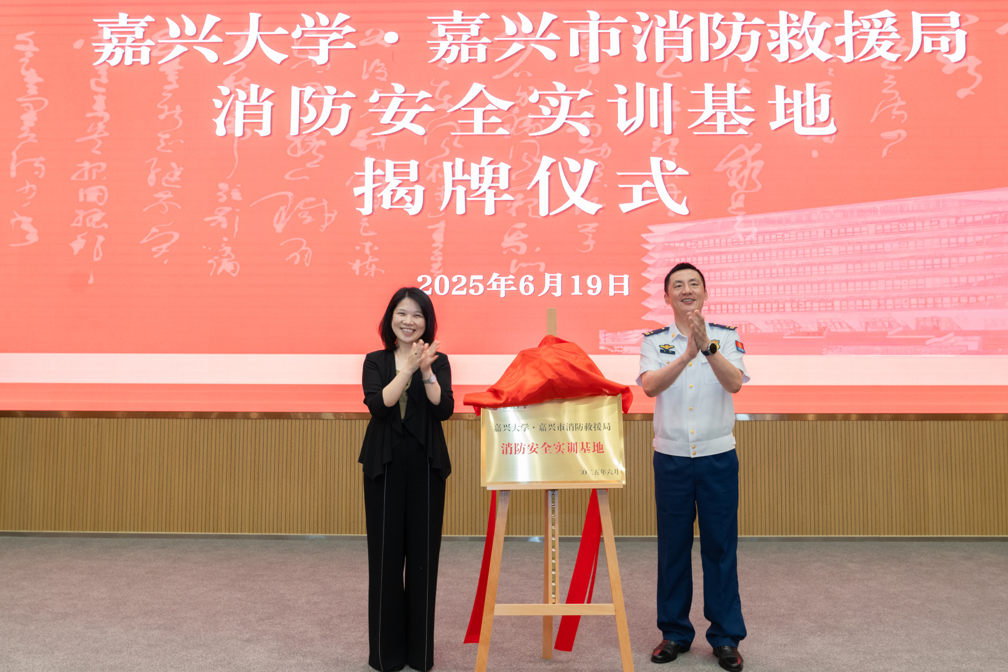 仪式上,双方代表签署了战略合作协议。陈立力和李琦共同为“嘉兴大学·嘉兴市消防救援局消防安全实训基地”揭牌。