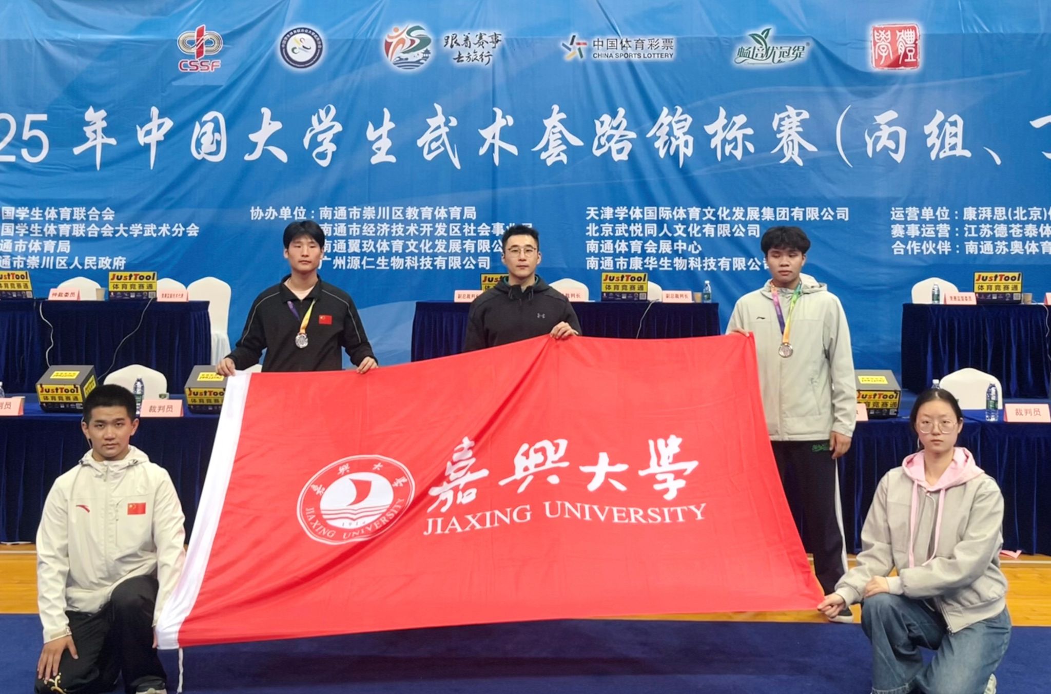 日前,由中国学生体育联合会主办,南通市体育局、南通市崇川区人民政府共同承办的2025年中国大学生武术套路锦标赛(丙组、丁组)在江苏南通圆满落幕。本次赛事汇聚了全国287所高校的近3000余名优秀选手参赛。我校代表队在比赛中发挥出色,凭借精湛的技艺与顽强拼搏精神斩获3银1铜的优异成绩,在全国舞台上展现了嘉兴大学学子的卓越风采。