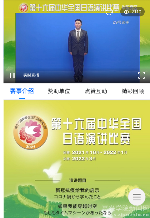1月8日,第十六届中华全国日语演讲比赛华东赛区比赛落幕。我校外国语学院日语专业学子张锦超喜获三等奖。
