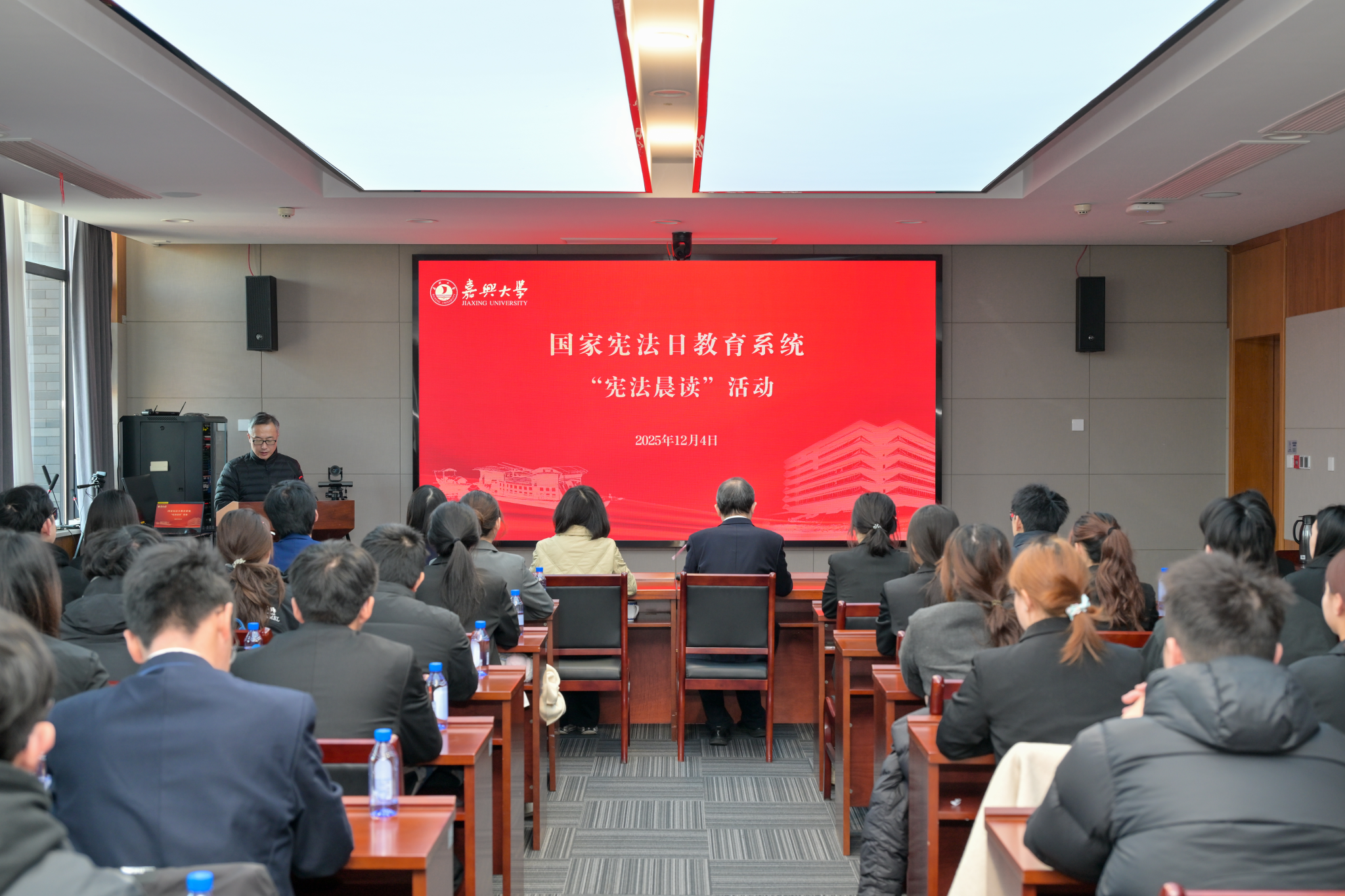 12月4日上午,我校举行“宪法晨读”活动,正式拉开了学校“宪法与浙江”主题宣传月系列活动的序幕。活动采取线上线下相结合的方式,与北京主会场同步开展宪法学习。副校长周宏伟出席活动并讲话。