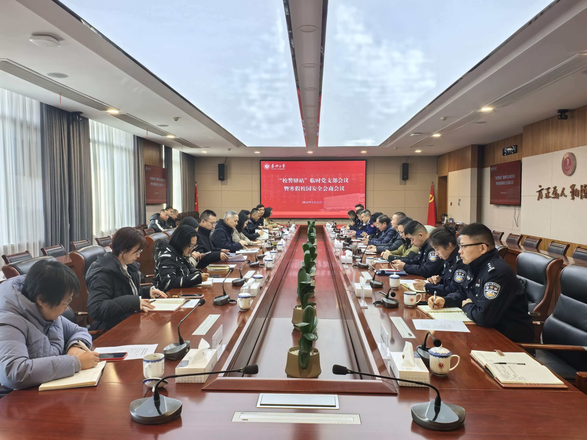 市公安局一支队、经开区党群工作部、社会治理部、民生事业部、综合行政执法局、消防救援大队、交警二大队,经开区公安分局情指中心、出入境管理大队、治安大队、刑侦大队、城南派出所等负责人,校“校警驿站”临时党支部全体成员参加会议。