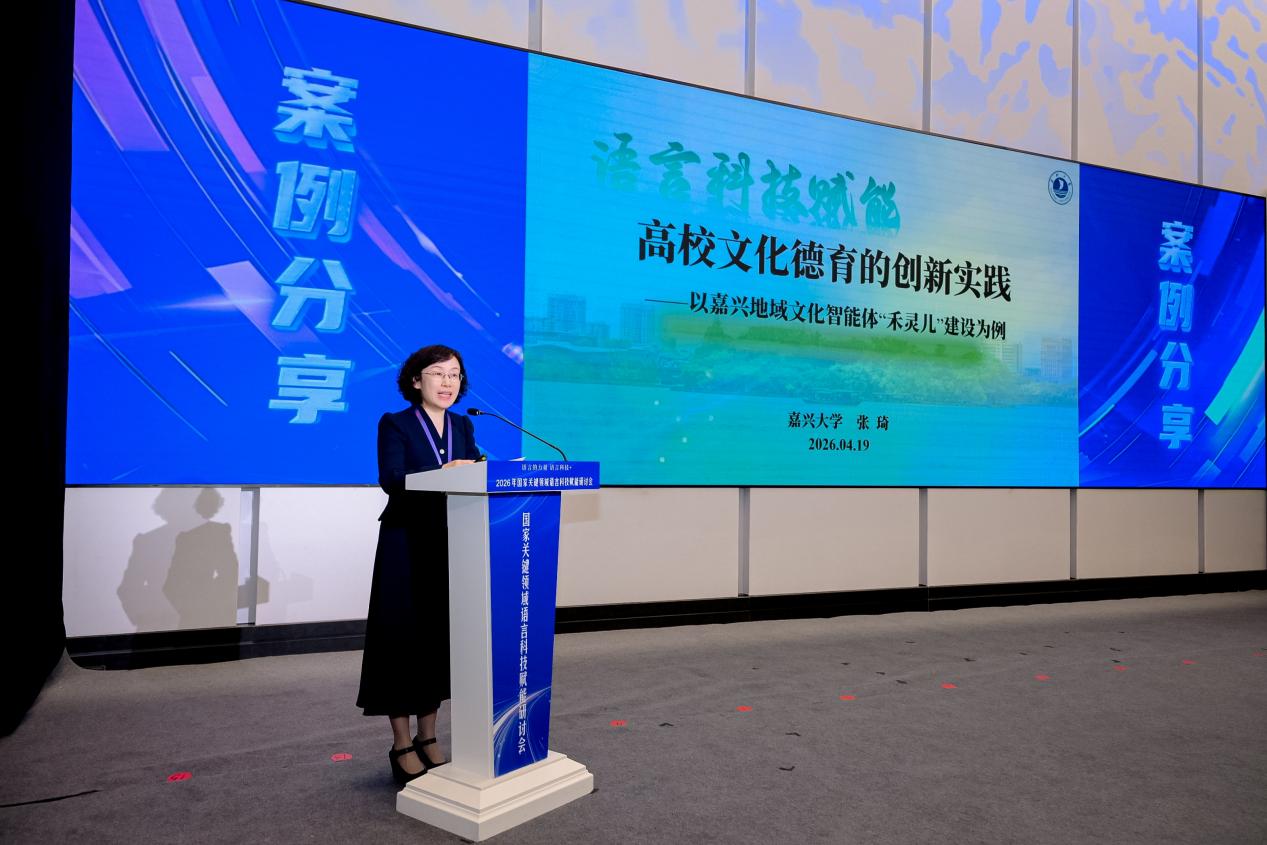4月19日,“语言的力量,语言科技+”2026年国家关键领域语言科技赋能研讨会在上海举行。我校作为浙江省唯一受邀高校代表,由副校长张琦作题为《语言科技赋能高校文化德育的新发展——以“禾灵儿”AI智能体为例》的主题分享。这是学校自主研发的“禾灵儿”AI智能体首次在国家级语言科技会议上公开亮相,受到与会专家的高度关注。