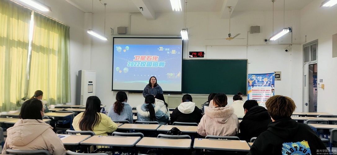 为聚合政校企合作,推进我校毕业生高质量就业,12月29日下午,我校在仁心楼举办了“选好岗位 安心留嘉”政校企面对面卫星化学专场招聘活动。嘉兴市人才交流服务中心、领军人才创业创新中心主任俞茵荔,卫星化学股份有限公司人力资源副总监柯常杰,我校学生工作处副处长吴满成及生物与化学工程学院师生代表等政校企成员30余人参加活动。