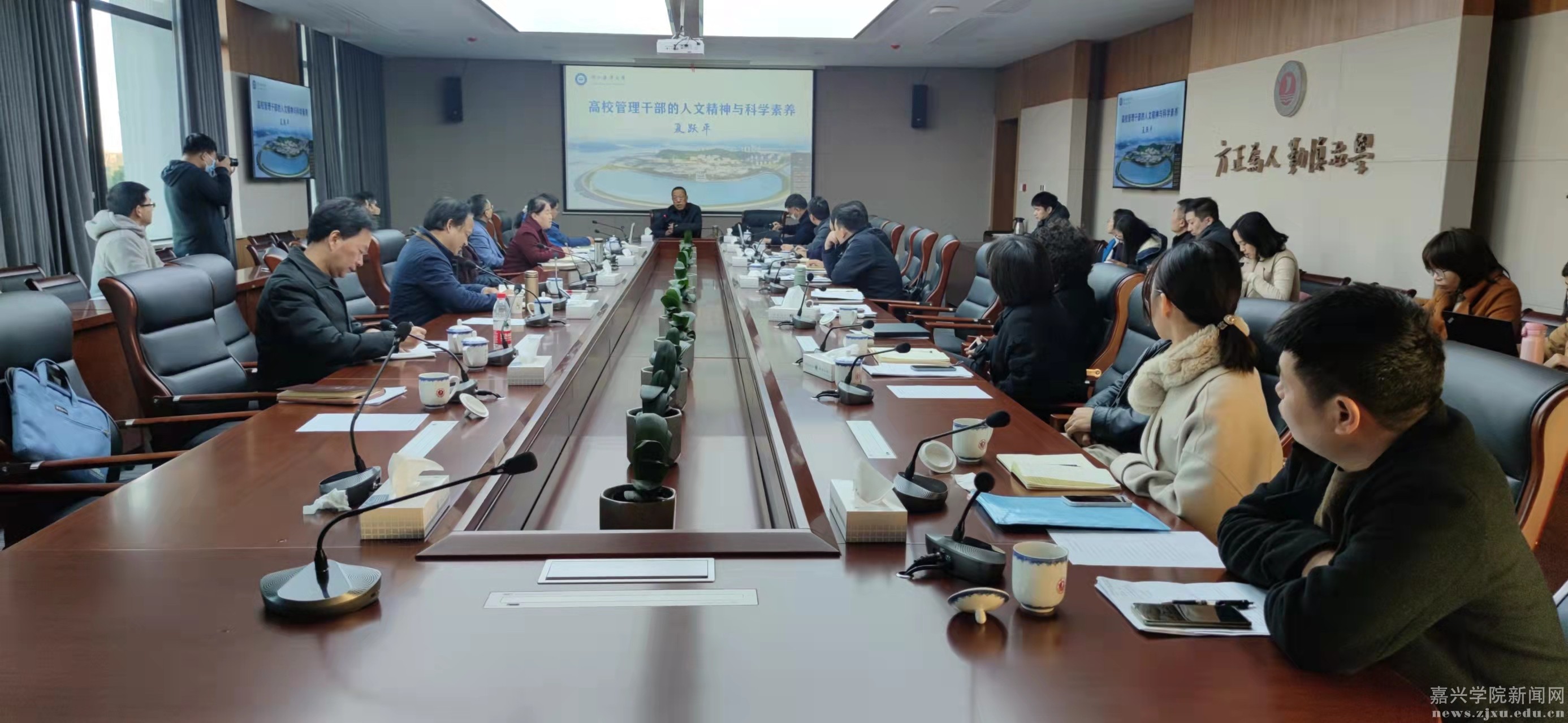 11月23日下午,教师发展中心特邀浙江海洋大学正厅级巡视员、教育部审核评估专家、专业认证专家、浙江海洋大学党委原副书记、我校党委原副书记夏跃平教授,为我校教师作题为“高校管理干部的人文精神与科学素养”的专题讲座。各教学单位和相关部门教学管理人员共40余人到场聆听告,220余位教师以线上方式参与活动。