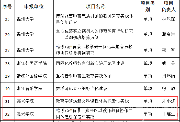 日前,浙江省教育厅下发《关于公布浙江省教师教育创新实验区建设项目的通知》,我校平湖师范学院申报的《教育学领域新文科课程体系探索与实践》和《“新师范”背景下嘉兴区域教师教育协作共同体建设探索与实践》两个项目获批立项。