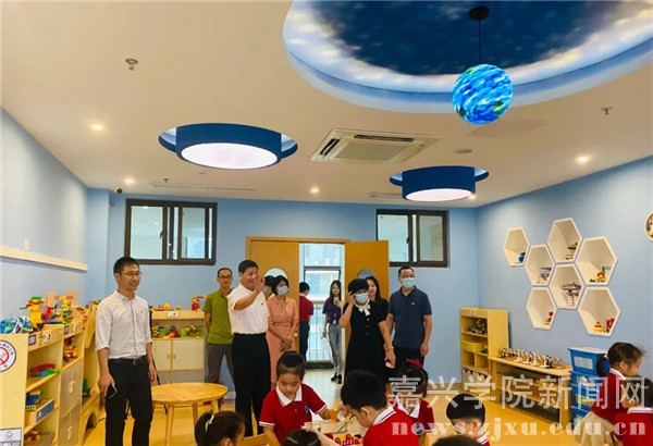 幼儿园园长邱瑜、常务副园长姚丽红就幼儿园基本情况进行了详细介绍,并带领慰问组一行实地参观了园区。蔡亚明一行与幼儿园教师进行了亲切交谈,走进教室看望了园里的小朋友,向辛勤工作在岗位上的教师送上节日祝福,并向幼儿园送上慰问金。蔡亚明对幼儿园开园两年来的建设和发展、在经开区学前教育中产生的影响力给予了充分肯定和高度评价。他希望幼儿园继续强化“科创”特色,办出特色、办出水平,成为嘉兴市学前教育示范园。