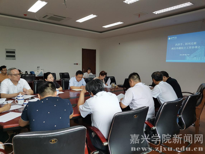 洪淳亨、阿列克谢两位外籍院士工作专题研讨会由副校长胡俊云主持。人事处、国际交流与合作处、资产与实验室管理处、科技处、材料与纺织工程学院、医学院等部门(单位)负责人参加会议。