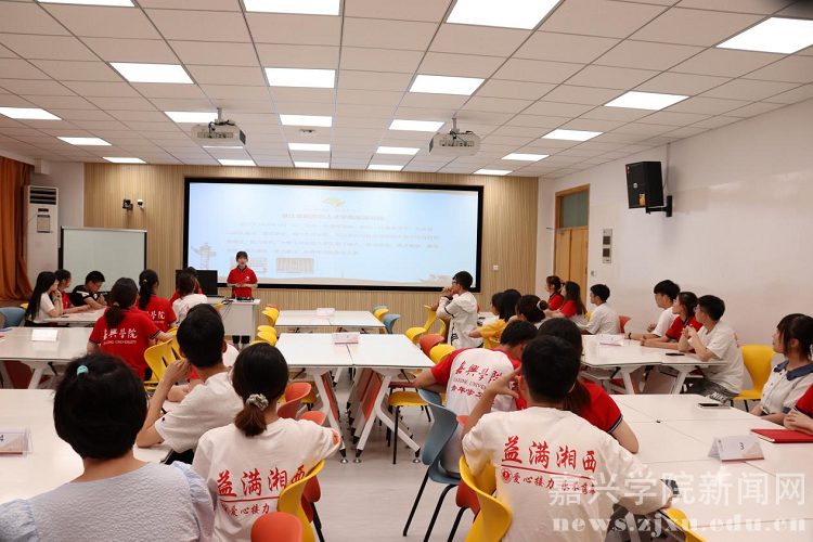 7月13日下午,清华大学“青年才俊浙江行”嘉善实践支队一行15人来我校开展校际交流活动。校党委副书记吴云达受邀出席并作专题报告,校团委书记张婧嫄、人才学院、益满湘西团队及青年学习社等师生代表40余人参加交流活动。