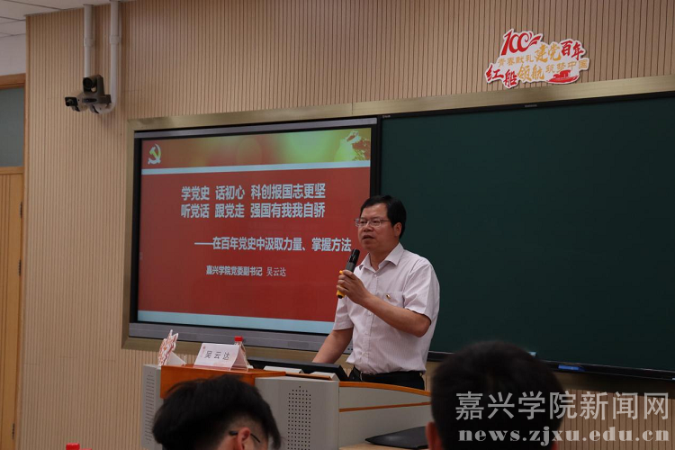 吴云达以“学党史、话初心,科创报国志更坚;听党话,跟党走,强国有我我自骄”为主题作报告。他在报告中首先论述了伟大建党精神和红船精神如何贯穿百年党史的全过程,随后阐释了学习百年党史、弘扬伟大建党精神和红船精神的现实意义,并重点聚焦感悟思想伟力、把握历史大势等六个方面,详细分析了如何在学习百年党史中汲取力量、掌握方法。吴云达勉励两校学子刻苦奋进、锐意创新,在新时代的洪流中,发扬科学精神,以科创报效祖国。