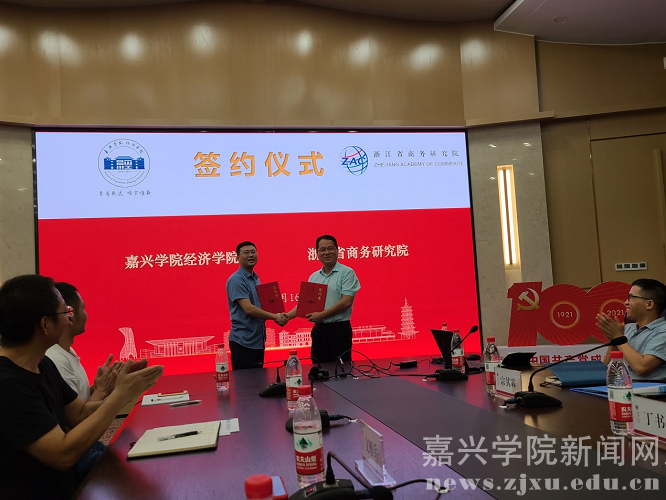 7月16日下午,经济学院与浙江省商务研究院在第六会议室举行校政战略合作协议签约仪式。