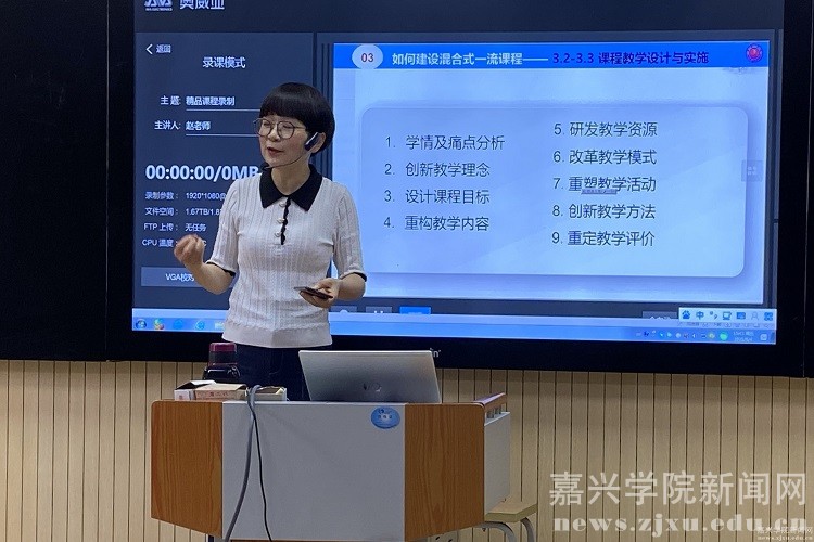 本次培训邀请浙江省优秀教师、省第一届高校教师教学创新大赛一等奖获得者刘小晶教授主讲。围绕主题,刘小晶结合个人经验,从为何要建设一流课程、何为混合式一流课程,以及如何建设混合式一流课程等三方面进行了分享。她从高校课程建设20年的变迁讲起,从创新教学理念、做好课程教学设计、课程教学实施、课程教学评价等四个方面讲述了如何推进混合式一流课程建设。她在培训中强调,课程改革中目标设定要具体化,课程目标要分价值目标、知识目标、能力目标等三方面。