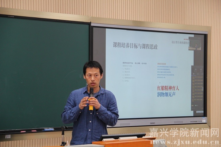 沙龙由设计学院王赟平博士担任主讲嘉宾,设计学院许晓伟副教授作为分享嘉宾。王赟平以“设计类专业的课程思政”为题,从课程培养目标与课程思政、红船精神育人润物无声、课程思政的缘起、嘉兴红色文化设计需求、红船精神教学方法与展示、课程思政建设成果等方面与大家交流了经验和思考,特别分享了具体设计案例和课程思政育人成果;许晓伟以“课程思政与设计教学”为题,分享了设计教学与课程思政相关教学成果和经验,他认为,“课程思政”不是在专业课上简单强加思政内容,“课程思政”在不同专业课程中融入的方式不同,他通过《广告设计》大广赛项目,分享了项目中体现出来的“课程思政”元素。