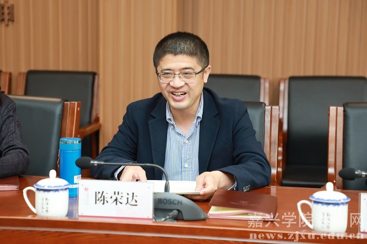 陈荣达代表学校对蒋乃华一行表示欢迎,并介绍了学校的总体办学情况和发展态势,重点介绍了红船精神育人特色和应用型办学成效。