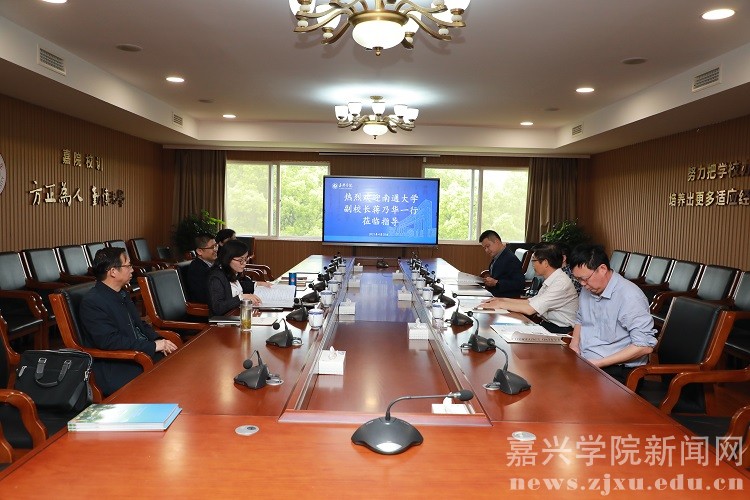 4月28日下午,南通大学副校长蒋乃华一行4人来校调研交流。我校副校长陈荣达主持座谈会。党校办、人文社科处、经济学院、商学院、红船精神研究中心相关负责人参加会议。