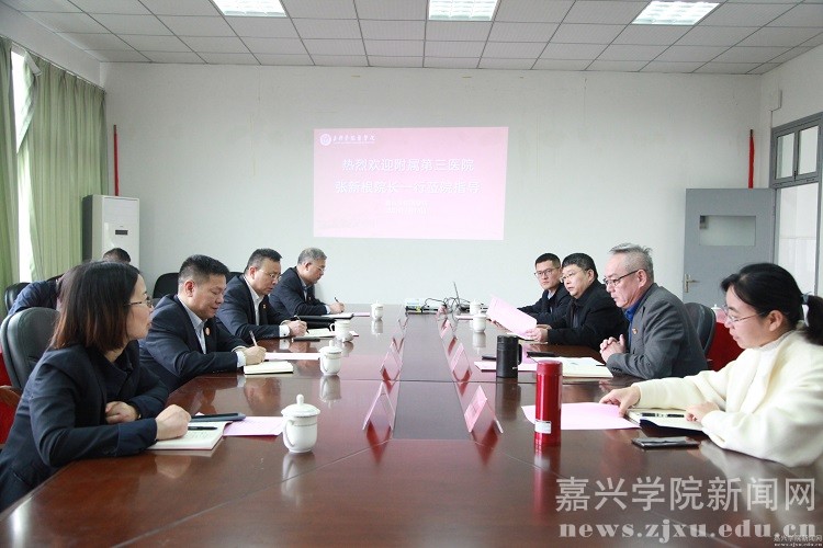 张新根介绍了附属第三医院的规模条件、医疗服务、重点科室和今后发展规划。他表示,医院会为嘉兴学院医学院学生提供良好的临床实习基地,希望医学院在教学、科研等方面给予医院大力支持,实现双方资源共享、深度融合、互利共赢。