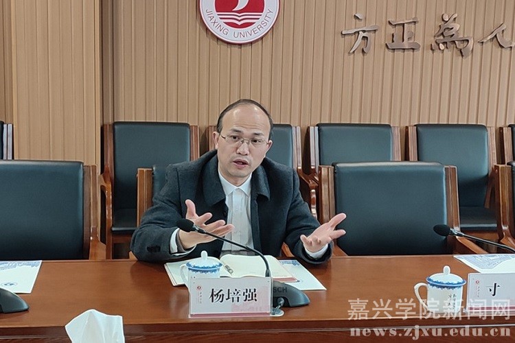 杨培强代表学校对温州大学国资与实验室管理处一行来校调研表示欢迎,就我校办学历史、南湖学院转设、资产管理、房产管理及大型仪器设备共享与管理等内容进行了介绍。