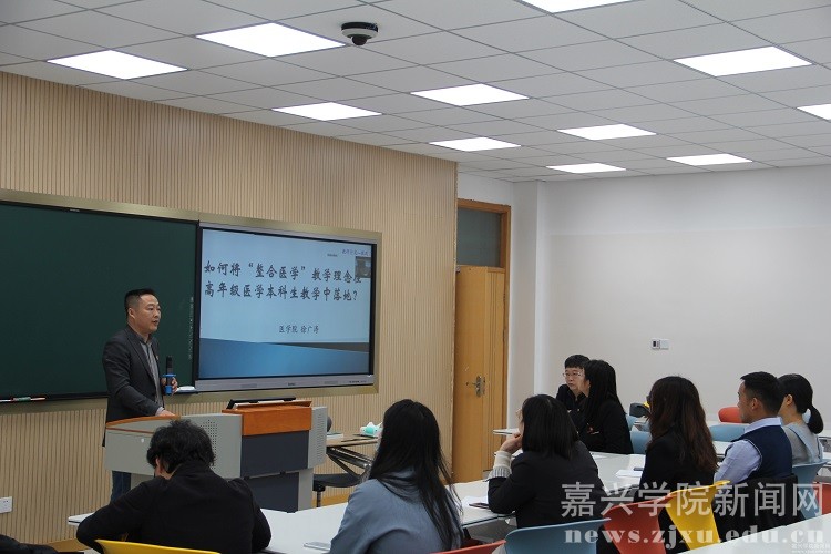 11月20日下午,由教师发展中心主办、医学院承办的2020年第十三期教学沙龙活动在梁林校区14号楼智慧教室及钉钉直播平台同步举行。本期沙龙主题为“如何将整合医学教学理念在高年级医学本科生教学中落地”,由医学院徐广涛老师主讲,王凤华老师主持。来自学校和附属医院的200余位教师通过线上线下方式参加活动。