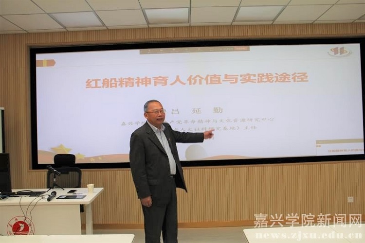 在前置研修坊中,吕延勤首先梳理了红船精神的历史形成过程,解析了红船精神的深刻内涵,分析了红船精神的历史地位,接着重点阐述了红船精神的育人价值。他认为,红船精神具有开拓创新的品质养成价值,具有走在前列的行动选择价值,具有理想信念的目标导向价值,具有百折不挠的意志培养价值,具有大公无私的道德建设价值,具有忠诚为民的宗旨教化价值。前置研修坊的重点是展示学校工作特色。为此,吕延勤展示了我校红船精神育人的五条特色途径与成效:一是如何将红船精神融入思想政治理论课教育教学,做好教学育人;二是如何将红船精神融入大学生社会实践,做好实践育人;三是如何将红船精神融入校园文化建设,做好文化育人;四是如何将红船精神融入教职工思想政治教育,做好师德师风教育;五是如何将红船精神融入学校基层党组织建设,做好教学支撑建设。