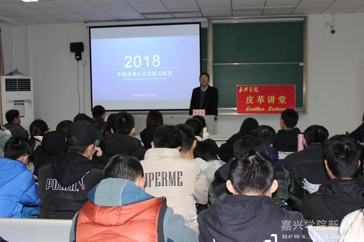 最后,与会领导和嘉宾共同为“嘉兴学院皮革讲堂”揭牌。陈占光作为“皮革讲堂”第一期主讲嘉宾,为师生作了题为“2018皮革行业发展与展望”的报告。