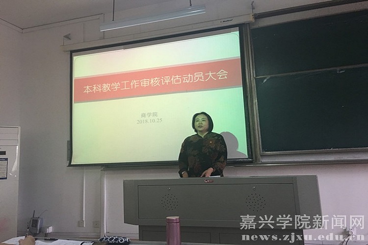 院长潘煜双作动员讲话。她首先传达了市委书记张兵和市委副书记、代市长毛宏芳在10月18日市委常委会议上的讲话精神。她指出,市委常委会议在学校召开,专题研究创建嘉兴大学、建设一流应用型高校事项,对嘉兴学院的发展具有里程碑意义。她强调,全员教职工要认真贯彻好、落实好市委常委会会议精神,特别是张兵书记、毛宏芳代市长的讲话精神和市委市政府《关于大力支持嘉兴学院创建嘉兴大学建设一流应用型高校的若干意见》精神,以超常规举措破解发展难题,全力以赴创建嘉兴大学,为建设一流应用型高校贡献一份力。她指出,百余年前,秉着心怀天下辅育莘子的初心,学校开启了商科教育。而今,作为学校办学历史最悠久的学院,在本科教学工作审核评估的大考面前,必须自加压力,以时不我待的紧迫感投入到迎评促建各项工作中去。她希望全体教职工坚定信心,齐心协力,立足本职工作,以高度的责任感和紧迫感打好迎评创优“冲刺战”。