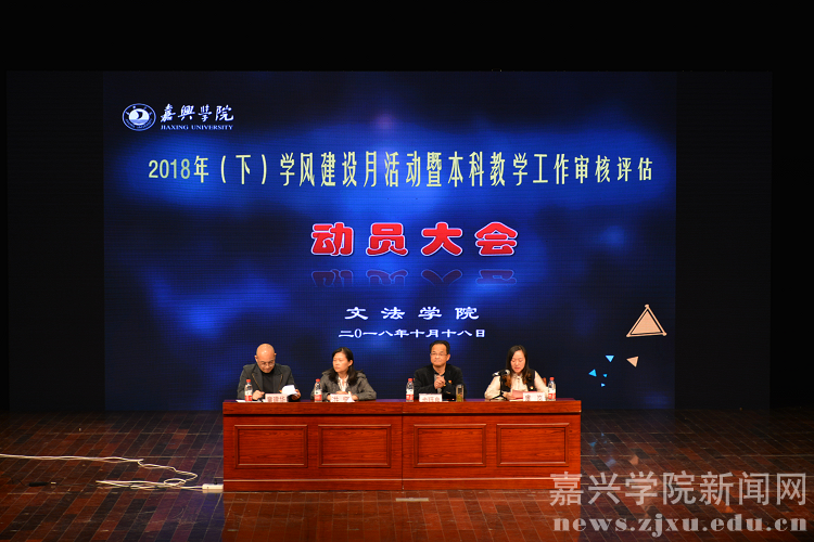 10月18日下午,文法学院学风建设月暨迎评动员大会在梁林校区小剧场召开。学院党委书记、副院长洪坚,党委副书记步珏良、副院长童建华,1000余名学生参加大会。大会由院党委委员、团委书记兼学工办主任虞岚主持。