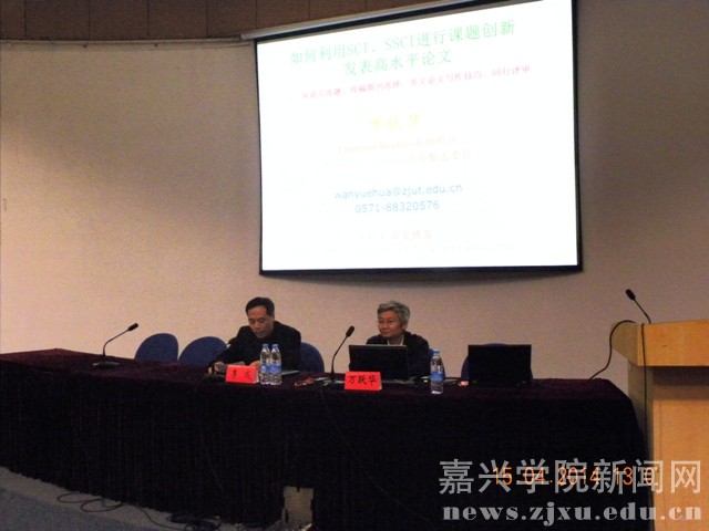 2014年4月15日下午,浙江工业大学图书馆信息咨询部主任、信息资源研究所所长、汤森路透(Thomson Reuters)高级顾问、Elsevier Scopus内容甄选委员、ProQuest顾问万跃华研究馆员应邀来校,在校行政楼一楼报告厅为我校教师带来了一场题为“如何利用SCI、SSCI进行课题创新发表高水平论文——从论文选题、投稿期刊选择、英文论文写作技巧、同行评审”的学术讲座。本次讲座系嘉兴学院百年校庆百场讲座系列、图书馆馆员素质拓展大家谈系列、嘉兴学院第六届“世界读书日”系列活动之一。近200名教师聆听了本次讲座。