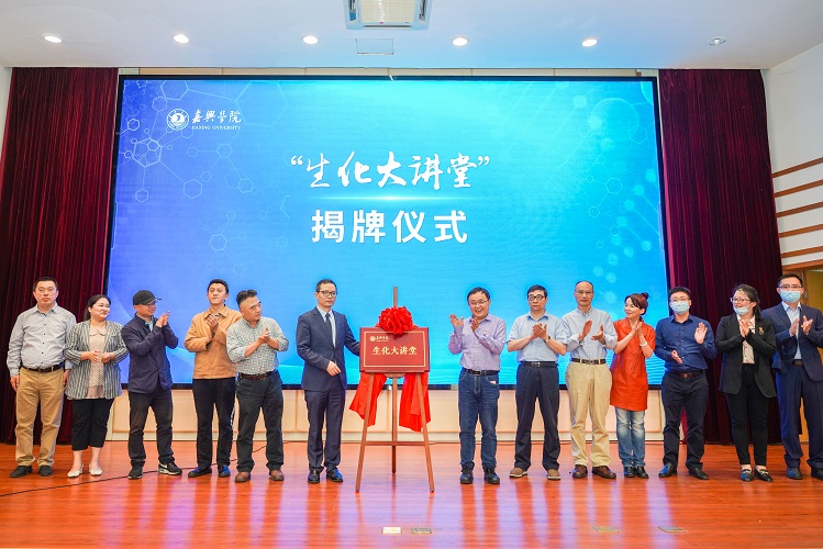 胡俊云、周宏伟共同为“生化大讲堂”揭牌。
