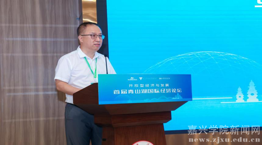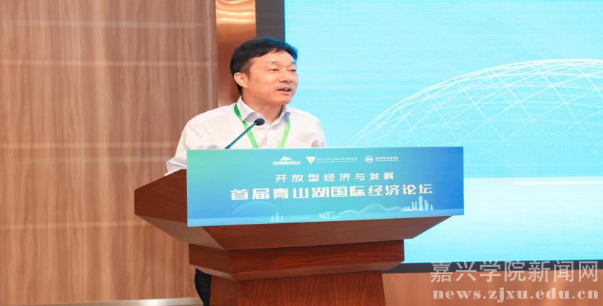 马述忠在致辞中指出,由国内国际贸易学、世界经济和国际商务学科在内的具有代表性学校、学科、学者发起的青山湖国际经济论坛,紧扣党和国家关于高水平开放的重大时代议题,首届论坛在中国革命红船起航地高校嘉兴学院举行,具有重要的意义,希望通过以“开放型经济与发展”为主题的学术研讨与交流,让青山湖国际经济论坛从嘉兴出发,走向全国,走向全球。
