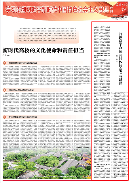 《光明日报》2023年12月27日第6版“学习贯彻习近平新时代中国特色社会主义思想专刊”,刊发我校马克思主义学院罗理章教授理论文章《打造数字命运共同体的意义与路径》。