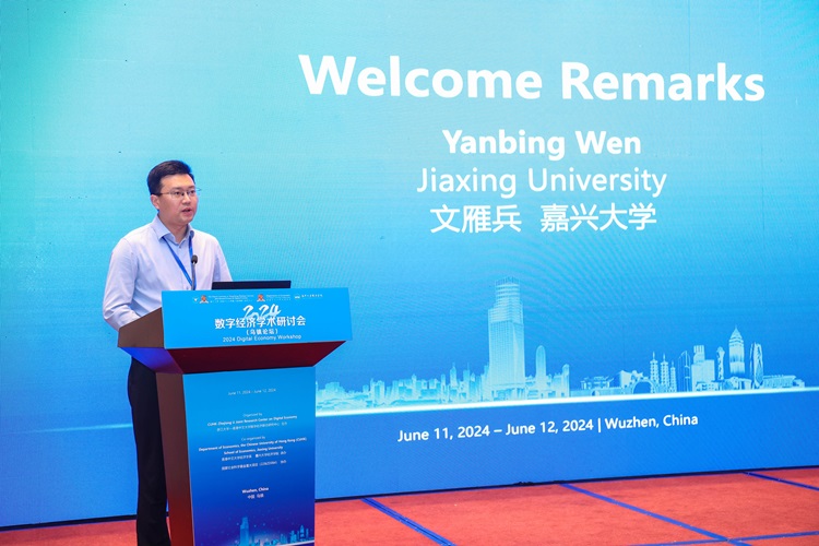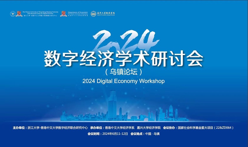 6月11-12日,2024数字经济学术研讨会(乌镇论坛)(2024 Digital Economy Workshop)在世界互联网大会永久举办地、中国江南水乡数字经济新高地——浙江嘉兴乌镇召开。本次研讨会由浙江大学—香港中文大学数字经济联合研究中心主办,香港中文大学经济学系、我校经济学院承办,国家社会科学基金重大项目(22&ZD064)协办。来自北京大学、对外经济贸易大学、嘉兴大学、山东大学、上海财经大学、浙江大学、中国人民大学、香港中文大学、杜克大学、科罗拉多大学、伊利诺伊大学、密西根州立大学以及蚂蚁研究院等世界各地20余所高校与研究机构的70余名著名专家和青年学者参会。