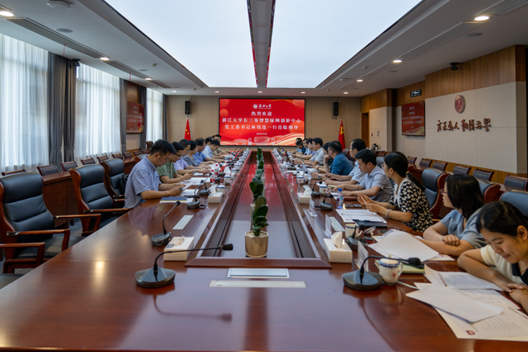 7月5日上午,浙江大学长三角智慧绿洲创新中心党工委书记林伟连一行来校调研交流。校党委委员、副校长(主持日常工作)张琦陪同林伟连一行参观了G60科创走廊产业与创新研究院,校党委委员、副校长於建明出席座谈交流会。