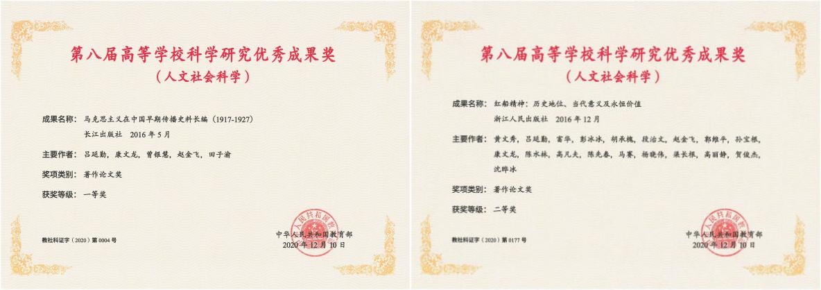 功夫不负有心人。2018年,研究中心一年内斩获两项国家社会科学基金项目——其中吕延勤主持的“习近平关于红船精神的重要论述研究”获国家社会科学基金重点项目。2020年马克思主义早期传播团队又获得国家社科基金重大招标项目的突破。研究中心迎来了第二次跃升——从承担市级项目向承担国家级最高项目的跃升。