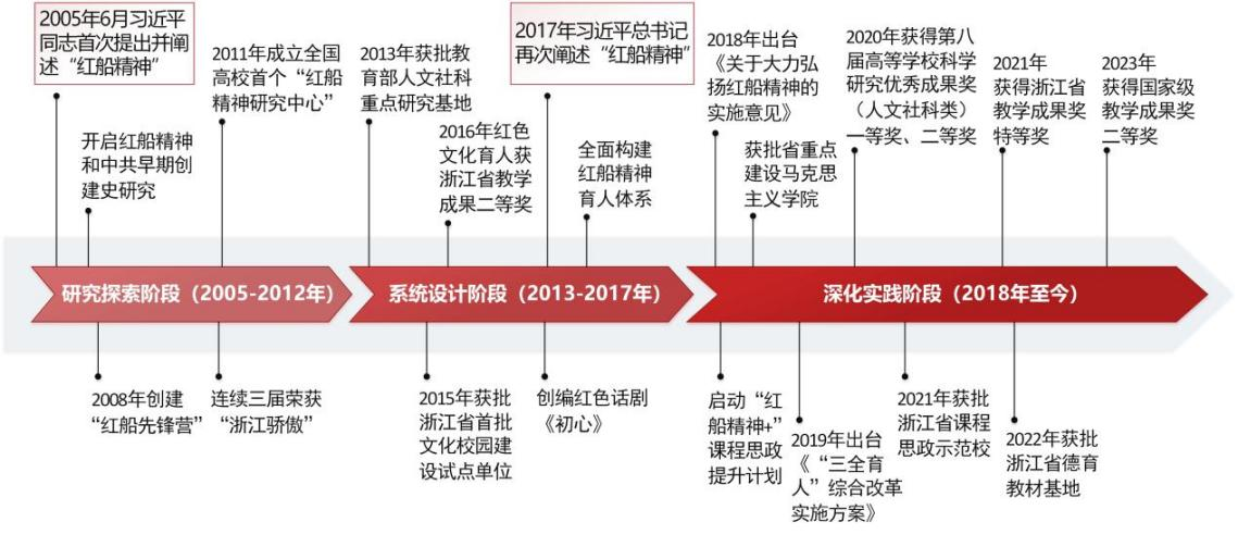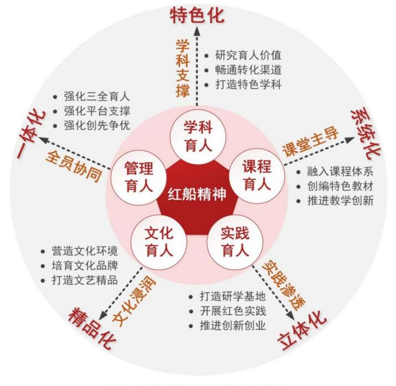 嘉兴大学整合力量搭建了系列教学研究、教学实践平台,积极推进红船精神系列研究成果转化为育人资源,构建出一套特色鲜明的红船精神“五化”育人体系,即“特色化学科育人、系统化课程育人、立体化实践育人、精品化文化育人、一体化管理育人”。