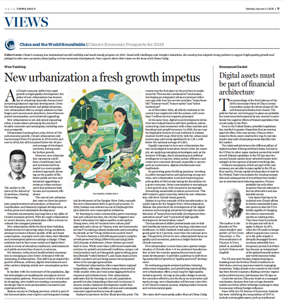 1月13日,我校经济学院文雁兵教授接受中国日报社采访,在China Daily发表文章《New urbanization can help boost demand》,文章提出,随着我国经济发展进入新常态,由高速增长阶段转向高质量发展阶段,新型城镇化不仅成为撬动内需的重要抓手,也为实现区域发展平衡和共同富裕提供了全新契机。文章强调,新型城镇化不同于传统以土地和投资驱动为主的城镇化模式,其核心是以人为本,通过提升城市品质、优化公共服务、推进产业升级,促进资源的合理配置和高效利用。