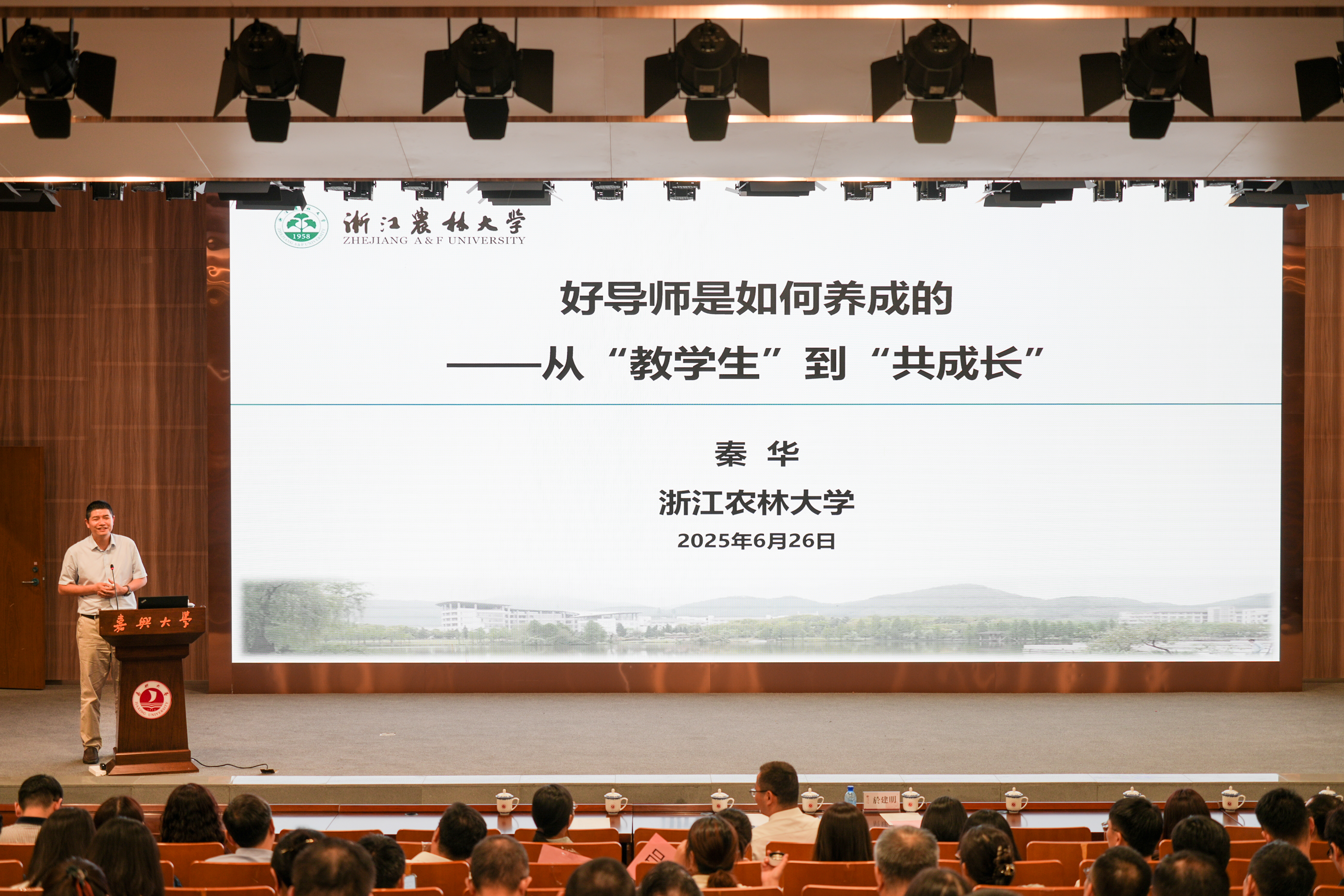 本期论坛特邀浙江农林大学集贤学院院长、博士生导师秦华教授作主旨报告。秦华教授以《好导师是如何养成的——从“教学生”到“共成长”》为题,聚焦团队建设、团队文化塑造、导学关系优化、培养举措创新、学术道德培养与规范等关键议题,进行了深入系统的理论阐释和实践指导,为我校导师队伍建设提供了宝贵经验。