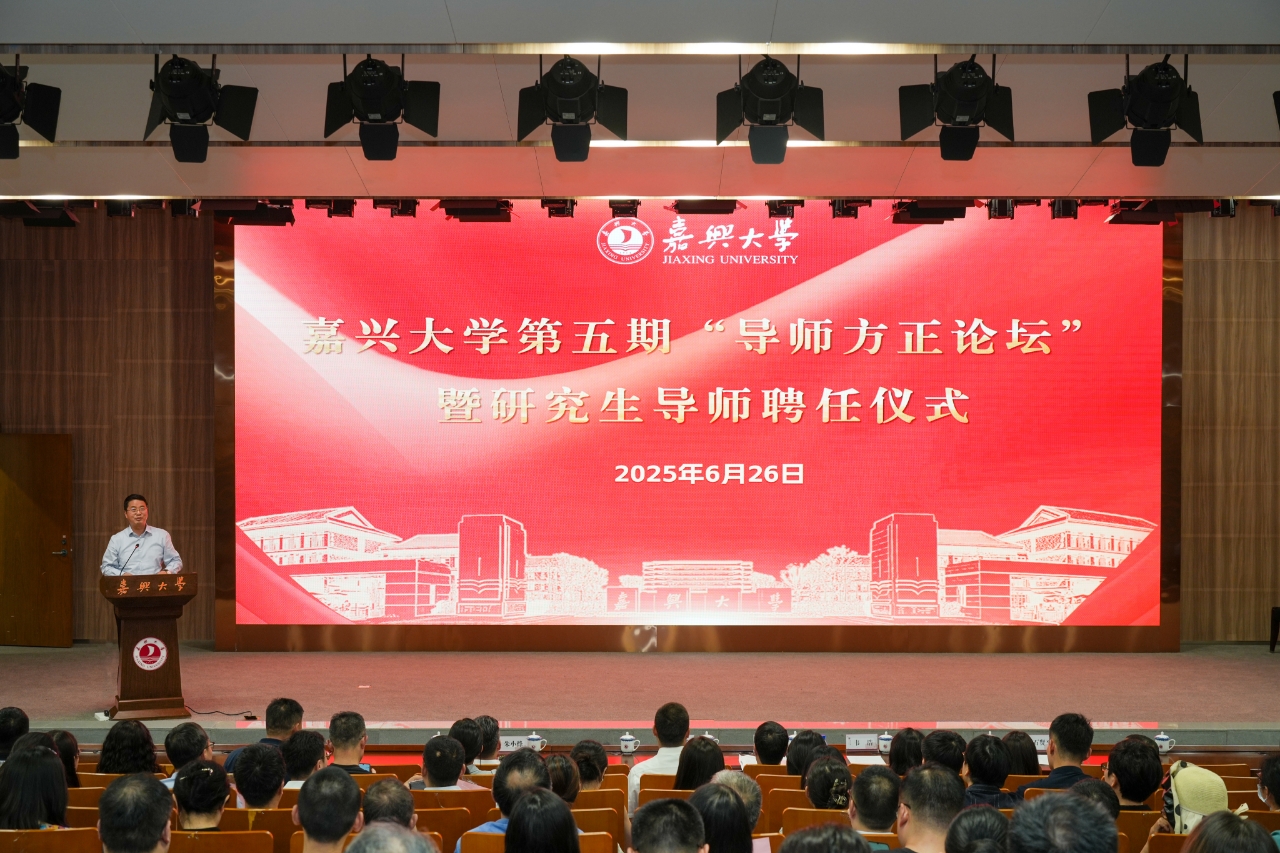 6月26日下午,我校第五期“导师方正论坛”暨研究生导师聘任仪式在图书馆学术报告厅举行,校党委委员、副校长於建明出席活动。
