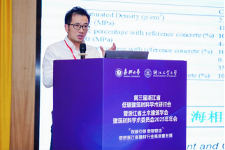 主题报告环节,浙江省建筑科学设计研究院有限公司赵宇宏正高级工程师、中国国检测试控股集团浙江有限公司俞坚正高级工程师、西安建筑科技大学白国良教授、东南大学张亚梅教授、浙江建投智能建造工程有限公司沈西华正高级工程师、浙江大学孟涛教授、同济大学赵增丰教授应邀发表特邀主题报告,省内各高校、相关企业专家学者发表主题演讲,围绕低碳与绿色建筑材料、固废资源化与循环利用、耐久性与长寿命设计、智能建造与数字化技术、功能与高性能材料、城市更新与系统评估等行业热点话题,全面覆盖建筑建材行业向“绿色、低碳、智能、高效”方向转型的核心热点,进行深度探讨和学术交流,给参会嘉宾带来了一场精彩纷呈的学术盛宴。