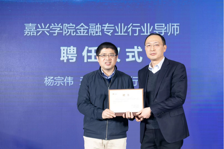 现场,副校长陈荣达为浙江赛智伯乐投资管理有限公司总裁陈斌,浙江洲际保险经纪有限公司原总经理曹达树,嘉兴市金融学会常务副会长、中国人民银行嘉兴市中心支行副行长汤钟尧,禾城农商银行行长杨宗伟,中国银行嘉兴分行行长许文醉,民生银行嘉兴分行行长宋秋海,财通证券嘉兴分公司总经理张奕峰,嘉兴市小微企业信保基金融资担保有限公司副总经理徐耀中,浙江平湖工银村镇银行行长岳一民等9位专家颁发我校金融专业行业导师聘书。
