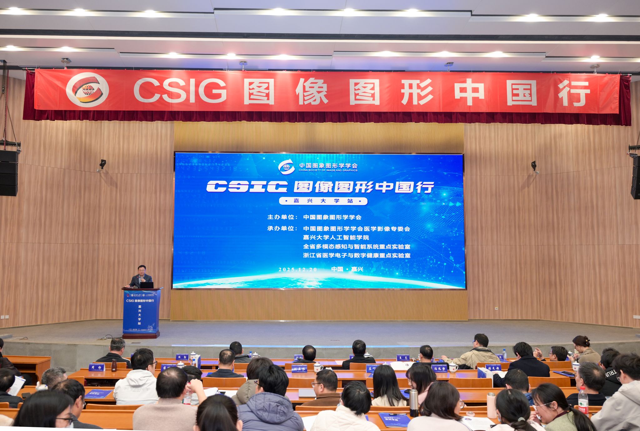 12月20日,“CSIG图像图形中国行”走进我校。本次活动由中国图象图形学学会主办,CSIG医学影像专委会、我校人工智能学院、全省多模态感知与智能系统重点实验室、浙江省医学电子与数字健康重点实验室联合承办。我校党委委员、副校长於建明,CSIG医学影像专委会主任委员、杭州电子科技大学教授厉力华出席会议并致辞。来自全国高校、科研院所及企业的专家学者与师生代表参加会议。