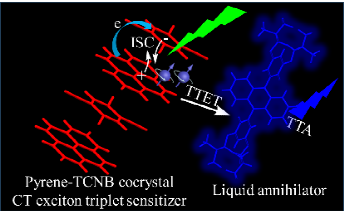 图.电荷转移激子敏化的三重态-三重态湮灭上转换示意图