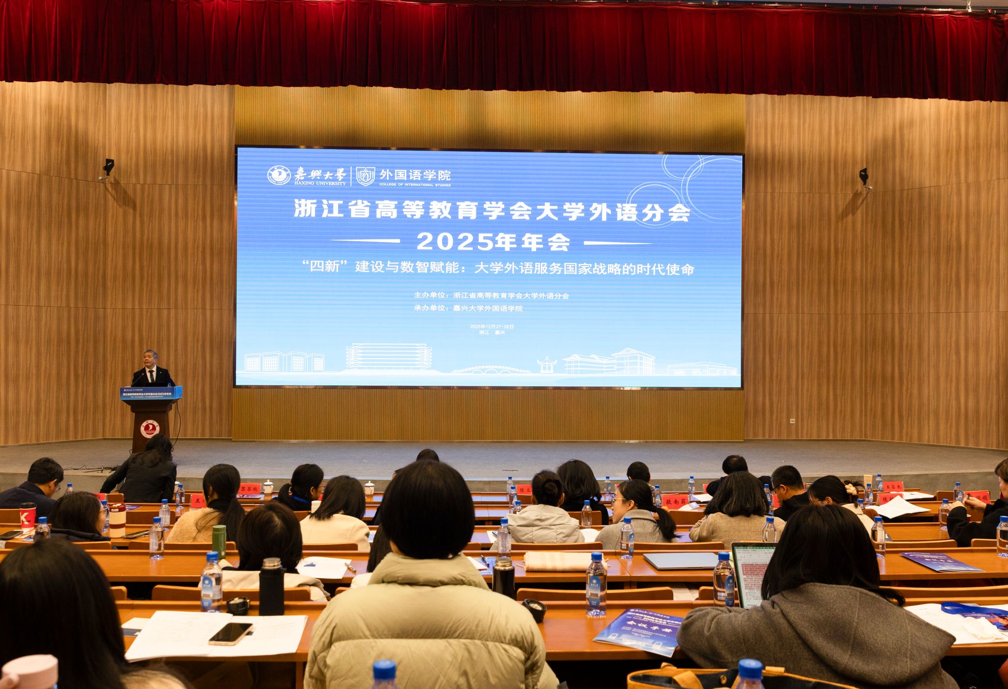 12月28日,浙江省高等教育学会大学外语分会2025年年会在我校举办。会议以“‘四新’建设与数智赋能:大学外语服务国家战略的时代使命”为主题,由浙江省高等教育学会大学外语分会主办,我校外国语学院承办。校党委副书记陈立力,浙江省高等教育学会大学外语分会会长、浙江大学闵尚超教授出席开幕式并致辞。