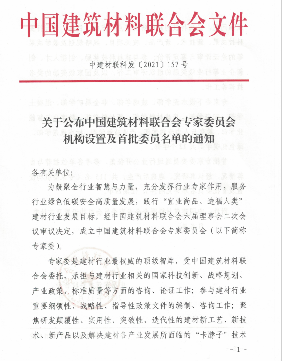 中国建筑材料联合会成立的专家委员会是我国建材行业最权威的顶级智库,受中国建筑材料联合会委托,承担与建材行业相关的国家科技创新、战略规划、产业政策、标准质量等方面的咨询、论证等工作。专家委员会下设12个学部,首批委员共115人,其中中国工程院院士7人。