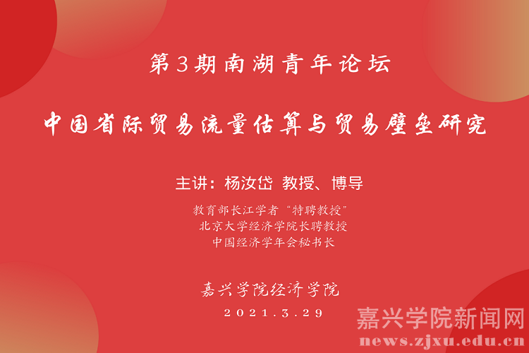 3月29日下午,我校经济学院举办第3期南湖青年论坛。论坛由教育部长江学者“特聘教授”、北京大学经济学院杨汝岱教授主讲,我校经济学院院长文雁兵主持。来自我校及中国社科院、复旦大学、南京大学、浙江大学、中山大学、中南大学、上海财经大学等高校的200余位学者线上参与论坛。