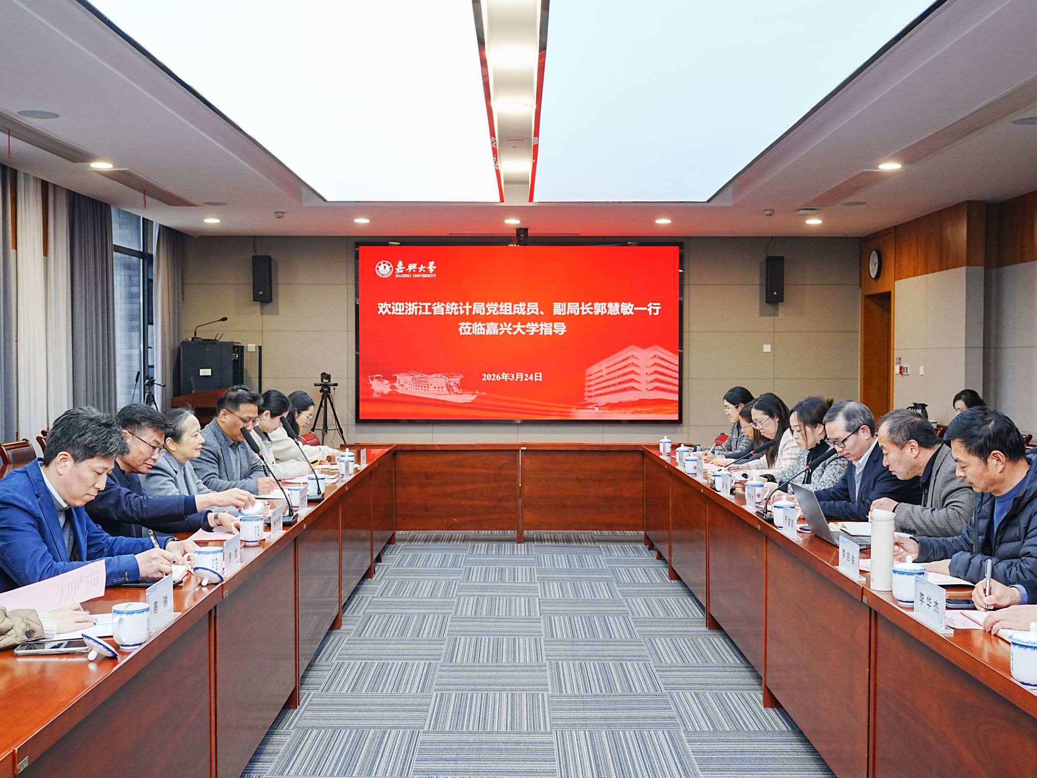 3月24日下午,浙江省统计局党组成员、副局长郭慧敏一行来校调研“浙江省新经济统计研究嘉兴基地”及统计学科建设情况。副校长周宏伟出席座谈会。
