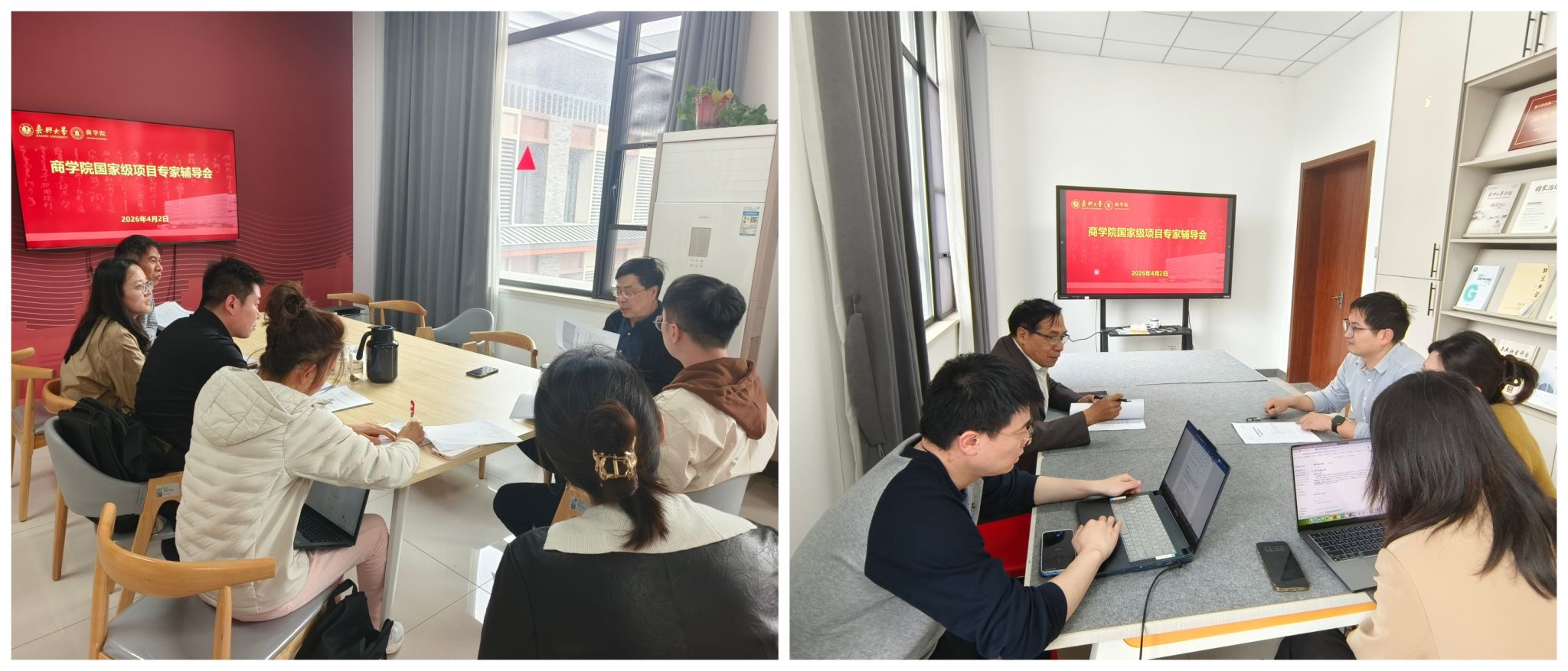 4月2日,商学院召开国家社科基金项目与教育部人文社会科学研究一般项目专家辅导会,特邀请首都经济贸易大学学术委员会名誉主任高闯教授、北京师范大学政府管理研究院名誉院长唐任伍教授出席指导。会上,两位专家对14份申报书逐份开展“一对一”指导与点评,围绕选题凝练、文献综述、技术路线设计、创新点提炼等核心要素进行系统拆解,指出逻辑断层、数据支撑薄弱及理论框架适配性不足等问题。