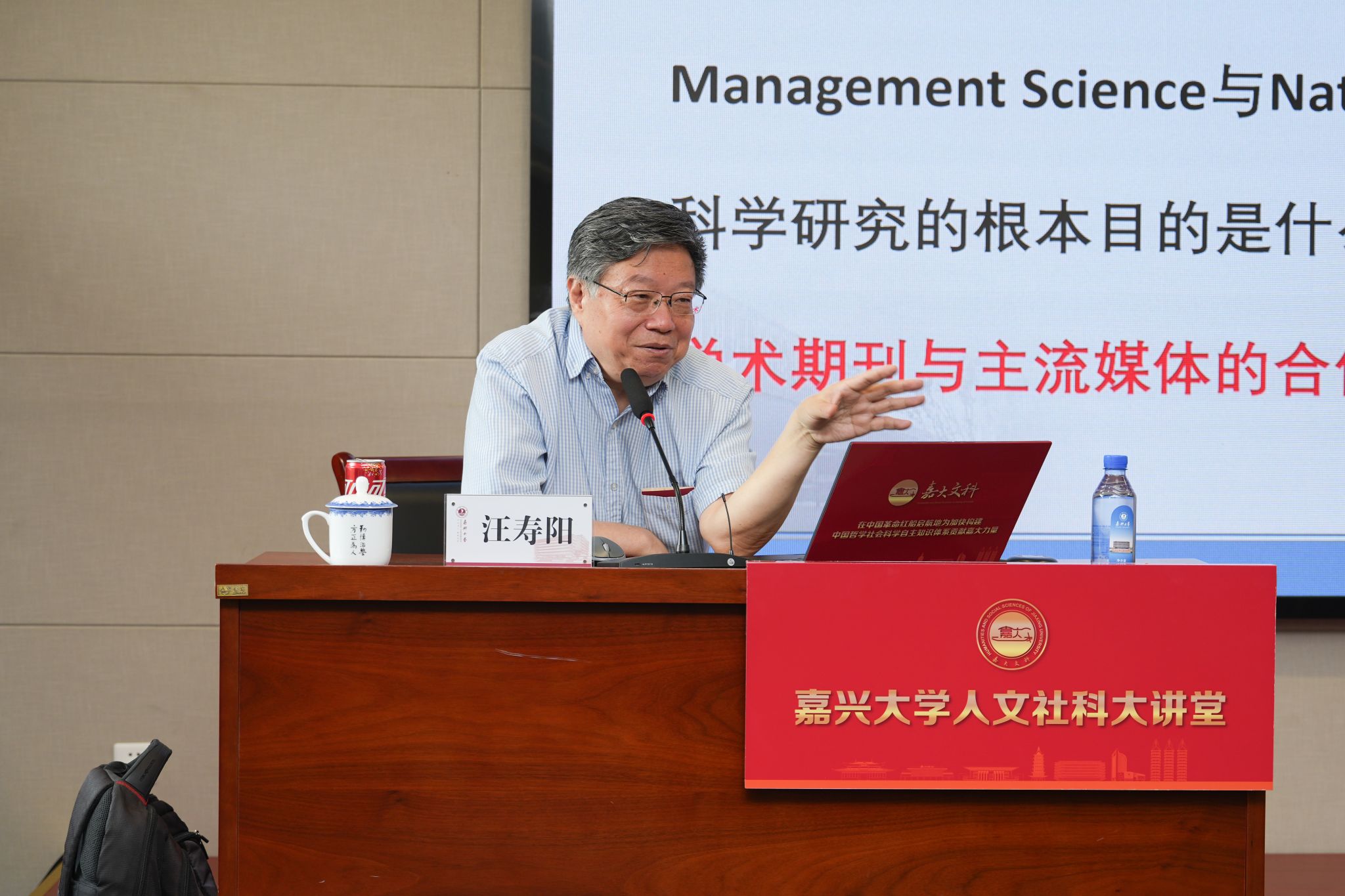 汪寿阳院士与现场师生进行了深入交流,他鼓励嘉大师生勇于探索,发挥地方优势和自身特色,研究新问题、真问题、好问题,在共同富裕、城乡融合、科创金融等有特色的领域,善创新地形成哲学社会科学的嘉大特色、嘉大品格、嘉大品牌,为构建中国哲学社会科学自主知识体系作出嘉大贡献。