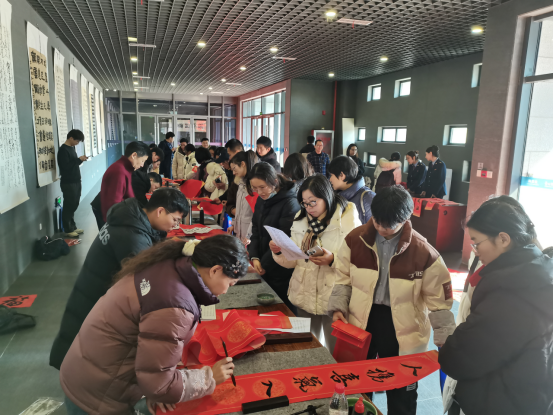 岁末辞旧迎新,墨香传递温情。1月22日,由校工会、校团委、南湖书画院主办,教职工书画协会与建筑工程学院分工会联合承办的“嘉里送福”迎新春送春联活动,在图书馆东附楼学术报告厅门口连廊开展。